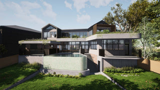 A modern industrial style home in materiality, with an openness and pavilion approach the living areas. With use of voids around a central light well, this house is designed to feel like an oasis that gathers the family into the central heart of the home, with branches that extend out to functional spaces.