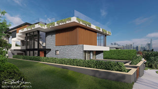 With wide-stretching views of Sydney’s harbour city, the owner’s desire to maximise the iconic views required the new home’s layout to be flipped from their existing residence. The lower entry level at lower ground is for minor bedrooms, each with their own ensuite bathroom. The upper ground floor accommodates open plan living, an outdoor living spaces, whilst the first floor is reversed for the master bedroom suite, home office & roof top terrace. A basement cut into the sandstone bedrock facilities car parking, water tanks, solar & data management & general storage, as well as connecting all floors via a centralised stairwell & elevator.